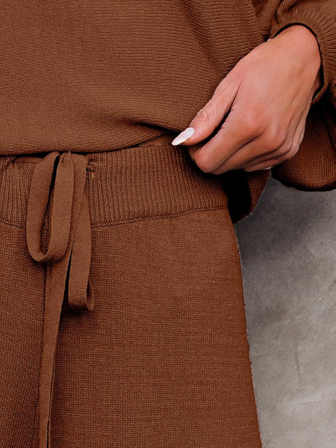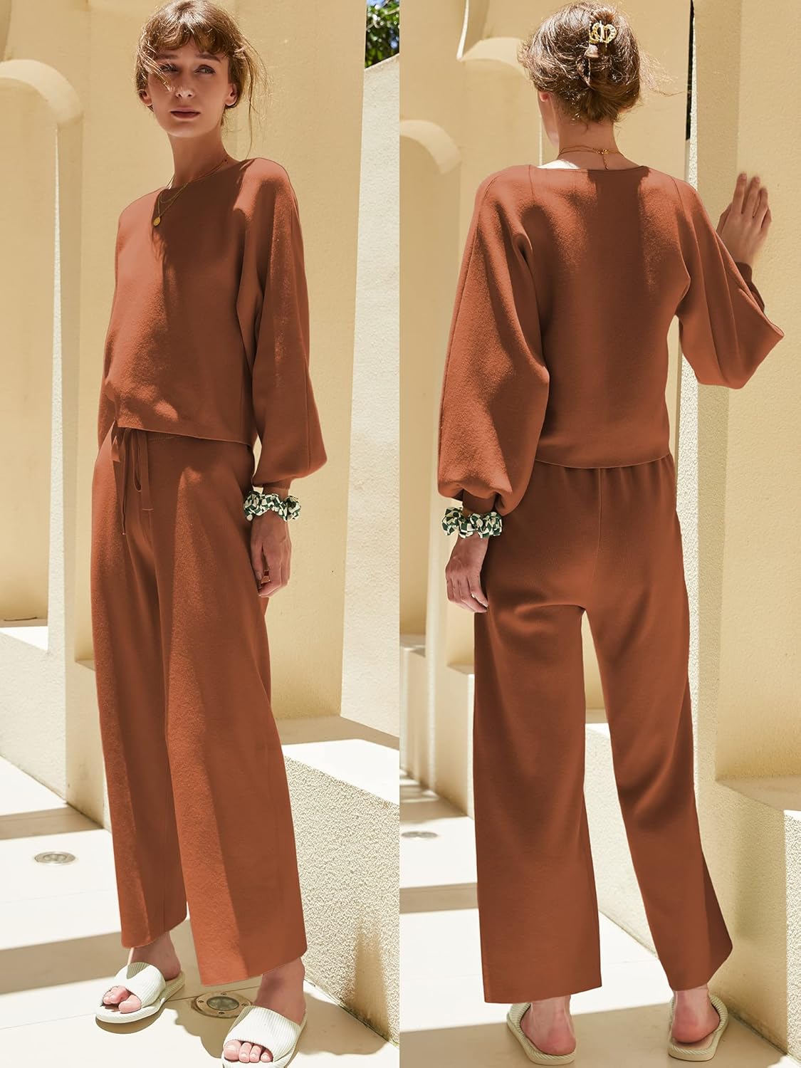 QUALITY FABRIC - 100% polyester. Imported Pull On closure Machine Wash 2 Piece Knit Set - Wide Crew Neck Tops + Long Wide Pants. Pair this off shoulder top with the Cozy Knit Wide Pants for the ultimate loungewear set. Make you feel comfy all day long. Cozy Knit Sweater & Wide Long Pants - Designed to offer warmth, coziness, and the perfect fit, the Cozy Knit Off Shoulder Tops features a flattering wide crew neck. Pants features soft knit elasticated waist for comfort. Fashion straight wide leg fit. Multiple Styles - Chic and womanly matching lounge sets for women. Can be repurposed into different looks like sleepwear, lounge set, jumpsuit and athleisure outfit. Perfect for casual, home, bedroom, bathroom, party or daily wear. It's casual style makes it not awkward even when guests visit.