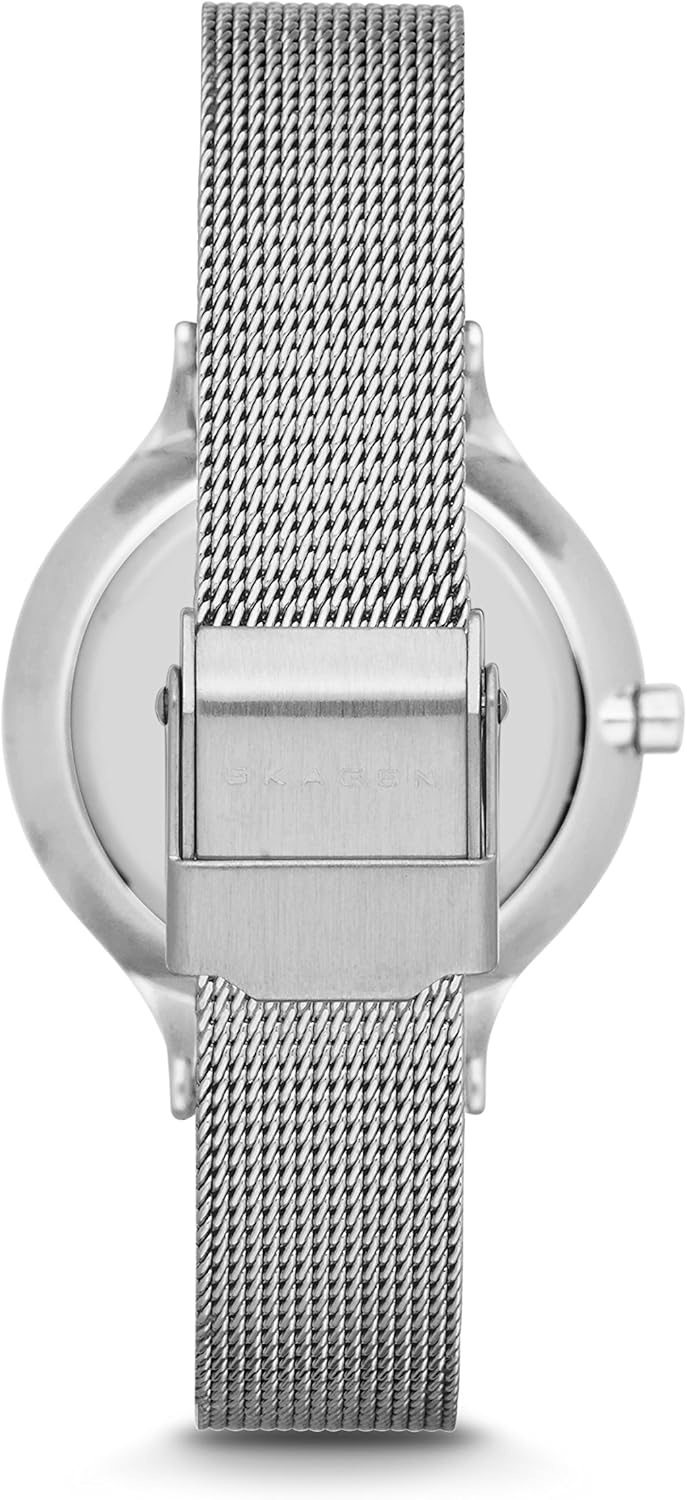 From the coastlines of Skagen to the architecture of Copenhagen and a celebrated fashion scene, Denmark embodies a special kind of energy: modern, minimalist, and playful. In the moment— with an appreciation for nature and the wild world around us. The Skagen Anita aesthetic is simple, and works with every style. Slip on one of our women's watches while you're getting ready for any occasion and you'll see your refined style take on a whole new level of sophistication. Featuring a 30mm stainless steel case with three-hand movement and a sunray dial with numerals at the 12 and 6 o'clock positions and crystals marking the remaining hours. 12mm stainless steel mesh strap with fold over clasp. nterchangable with other Skagen bands. Water resistant up to 30m: Will withstand splashes in water