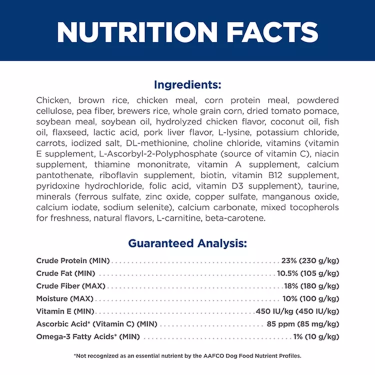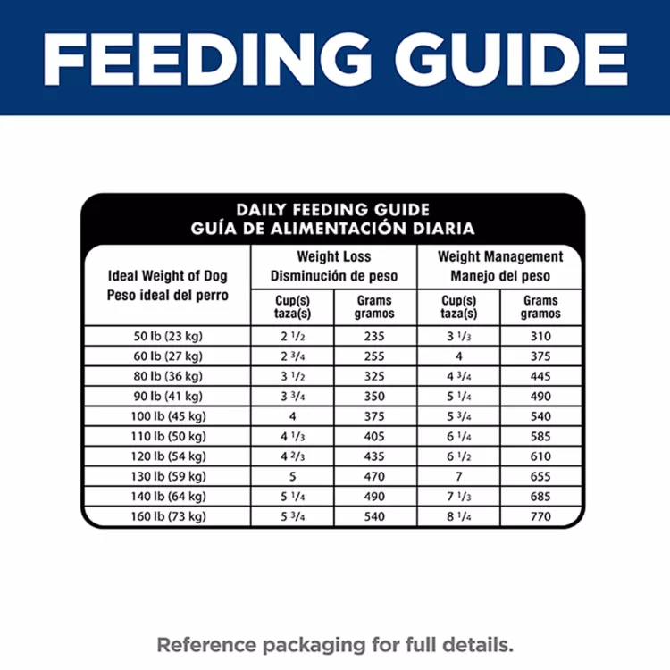 This weight management and mobility support dog food was created with Hillâs unique understanding of the biology of overweight dogs. It provides lean muscle support, and also uses clinically proven antioxidants for a healthy immune system. Over 70% of dogs lost weight within 10 weeks (USA Study). With added fish oil to provide EPA, an Omega-3, to help support joint health for a mobile & active life. Feed this breakthrough nutrition for your large dog's healthy weight maintenance and joint health, and now it comes in a larger kibble for large breed dogs.