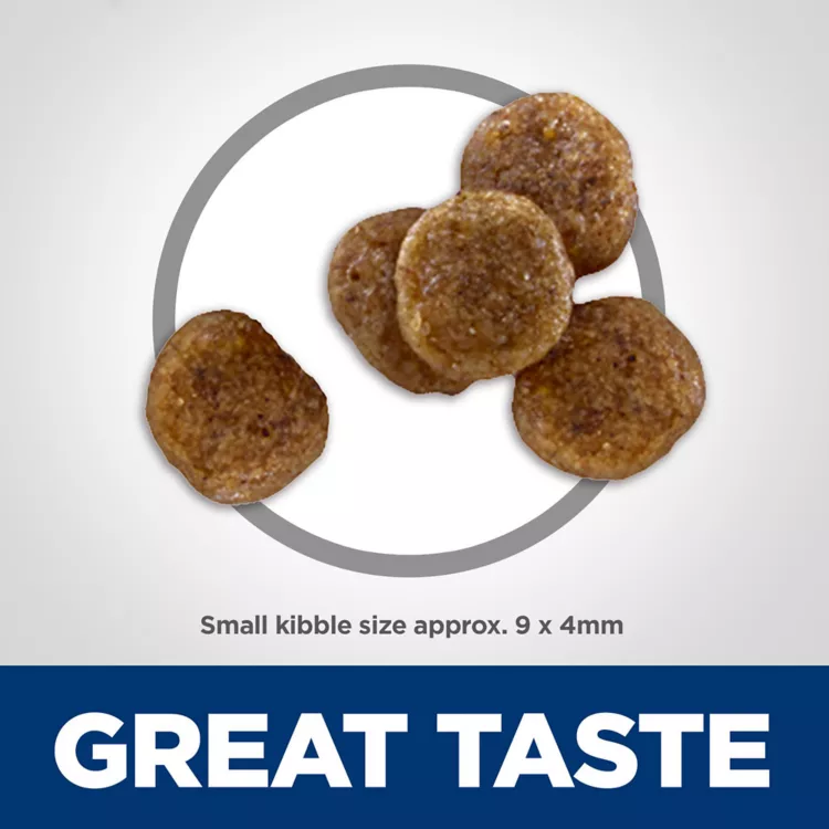 Hill's Science Diet Adult 7+ Small Bites dry dog food is formulated for specific aging needs. This food provides easy-to-digest nutrition with a synergistic blend of ingredients to help support energy & activity level, and features a delicious chicken flavor in a small bite size for those that prefer variety.