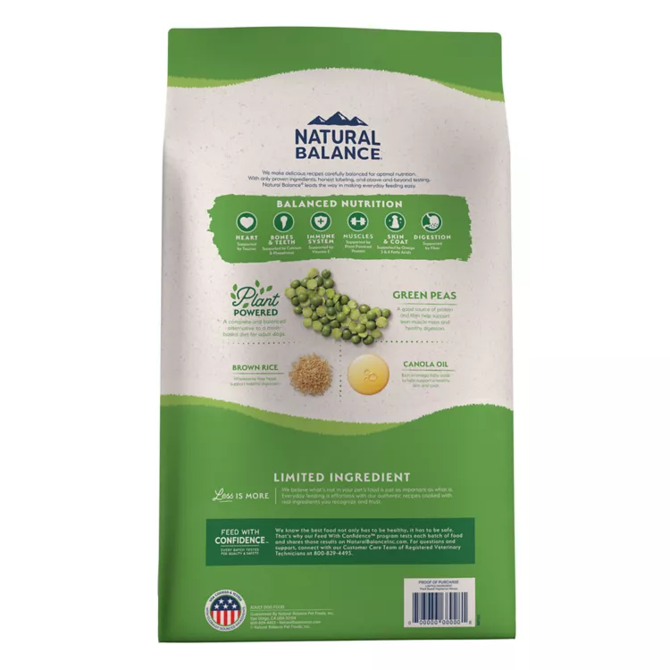 Natural Balance Vegetarian Formula Dry Dog Food is designed to provide all breeds of adult dogs a complete and balanced alternative to a meat-based diet. This dog food offers the same essential nutrients found in diets with meat as the primary protein source, but it is made with no animal or dairy products.