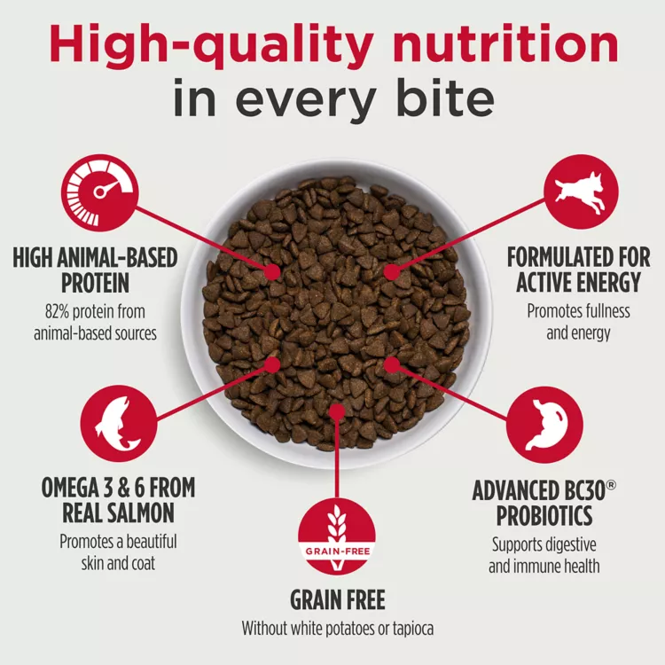 Teeming with low-glycemic-index ingredients and industry-leading levels of animal-based proteins, this Nulo MedalSeries Grain-Free Adult Salmon & Sweet Potato Recipe Dog Food fulfills your canine's nutritional needs. As the food's primary ingredient, deboned salmon provides an irresistible, meaty flavor that will have your dog wagging his tail in anticipation. The included probiotic helps ensure healthy digestion, while botanicals promote organ and tissue health. Only at PetSmart.