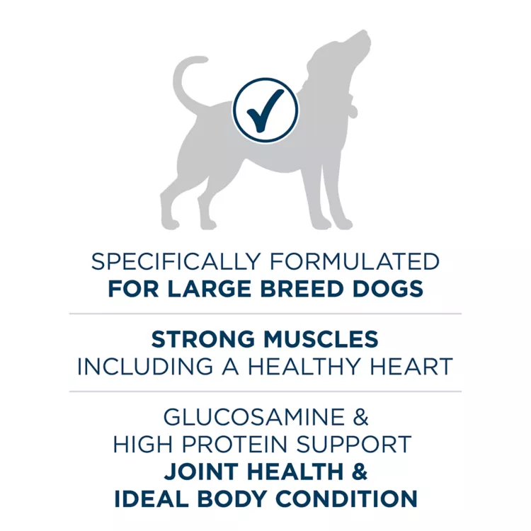Features & Benefits: This adult dog food for large dogs is made with real chicken as the first ingredient supports strong muscles, including a healthy heart. A SmartBlend of high–quality ingredients in this large adult dog food formula is tailored to support the health of large breed dogs. Purina ONE large breed adult dog food includes four antioxidant sources to provide immune support for dogs and omega–6 fatty acids, vitamins and minerals to support a shiny, healthy skin and coat. Deliciously crunchy bites and tender meaty morsels deliver great taste in a dog food kibble recipe made with no artificial flavors or preservatives. High Protein dog food crafted in Purina–owned, U.S. facilities provides 100 percent nutrition for adult dogs. Spoil your pet with Purina products. Reward yourself with points on every purchase. Download the myPurina app today.