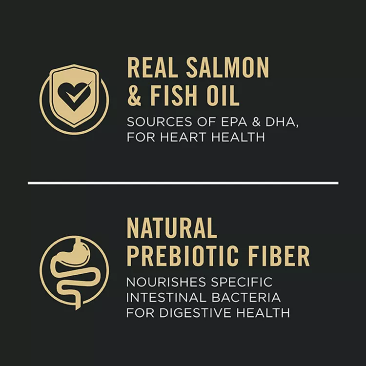 Features & Benefits: Oat meal is easily digestible and gentle on the digestive system. High protein formula, with real salmon as the first ingredient. Complete and balanced adult dog food formula fortified with guaranteed live probiotics for digestive and immune health. Used to be known as FOCUS Sensitive Skin and Stomach Salmon and Rice Formula. Sunflower oil rich in omega–6 fatty acids for healthy skin and coat. Natural prebiotic fiber nourishes specific intestinal bacteria for digestive health. Antioxidants for a healthy immune system. Fish oil rich in omega–3 fatty acids for joint health and mobility. Salmon offers a nutrient–rich high–quality source of protein. Made without artificial colors or flavors. Spoil your pet with Purina products. Reward yourself with points on every purchase. Download the myPurina app today.