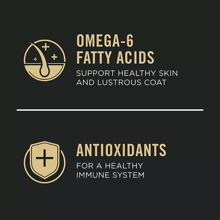 Guaranteed Analysis: Crude Protein (Min)...26.0%, Crude Fat (Min)...16.0%, Crude Fiber (Max)...4.0%, Moisture (Max)...12.0%, Linoleic Acid (Min)...1.5%, Eicosapentaenoic Acid (EPA) (Min)...0.1%, Docosahexaenoic Acid (DHA), (Min)...0.1%, Calcium (Ca) (Min)...1.0%, Phosphorus (P) (Min)...0.8%, Selenium (Se) (Min)...0.35 mg⁄kg, Vitamin A (Min)...15,000 IU⁄kg, Vitamin E (Min)...460 IU⁄kg, Ascorbic Acid (Vitamin C)* (Min)...70 mg⁄kg, Glucosamine* (Min)...350 ppm, Omega–3 Fatty Acids* (Min)...0.75%, Omega–6 Fatty Acids* (Min)...1.6% *Not recognized as an essential nutrient by the AAFCO Dog Food Nutrient Profiles.
