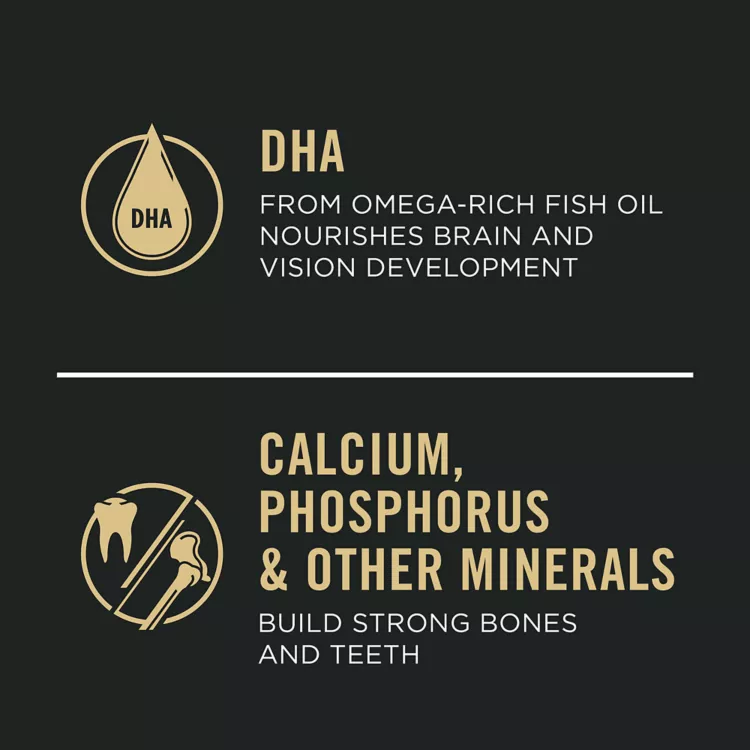 Key Benefits: Real salmon is the number one ingredient in this puppy dog food, which is High in protein plus fish oil, a source of EPA and DHA, for heart health, Purina Pro Plan salmon puppy food is gentle on the stomach and helps maintain stool quality and contains rice, which is easily digestible, Sensitive skin dog food with rice includes omega-6 fatty acids and vitamin A to nourish healthy skin and lustrous coat, DHA from omega-rich fish oil for dogs in this salmon puppy food supports brain and vision development, and antioxidants help maintain your puppy's developing immune system, Formulated with natural prebiotic fiber to nourish specific intestinal bacteria for digestive health