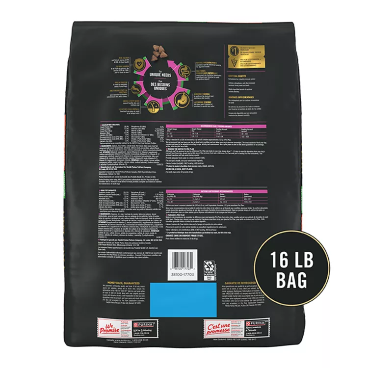 Help your small dog to be their best every day with Purina Pro Plan Brand Sensitive Skin & Stomach Small Breed Formula adult dry dog food. This highly digestible recipe features salmon as the first ingredient, and every high-quality ingredient is carefully selected for a specific nutritional or functional purpose. Made without corn, wheat or soy, and without poultry by-product meal, this dry dog food formula gives your dog wholesome goodness in every bowlful. Your dog gets the specialized nutrition they need for a healthy, happy life, along with 23 essential vitamins and minerals to help support their overall health and wellness. Give your canine companion a mealtime option formulated specifically for small dogs under 20 pounds, and show them how important their health and happiness are to you.