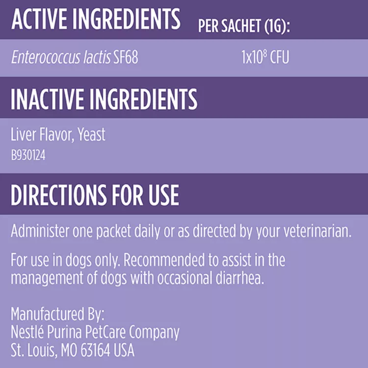 great dog supplement. Probiotic dog powder supplement for the dietary management of puppies and adult dogs with diarrhea. Dog digestive support supplement containing a probiotic for dogs proven to promote intestinal health and balance. Dog immune supplement promotes a robust immune system and contains antioxidants. Easy–to–feed dog probiotics powder supplement. Spoil your pet with Purina products. Reward yourself with points on every purchase. Download the myPurina app today.