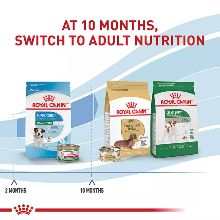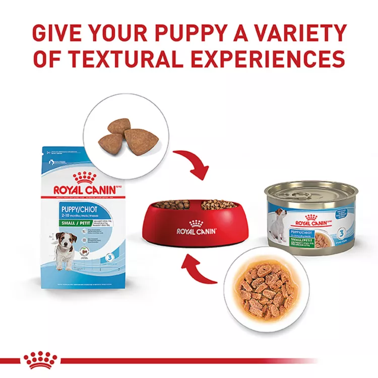 Royal Canin Small Puppy Dry Dog Food is targeted nutrition for your small dog's healthy growth and development. It features all the proteins, minerals, and vitamins needed to support your puppy's high energy needs during their short growth period. This diet is enriched with DHA, an omega-3 fatty acid that's scientifically proven to help support a puppy's brain development. The small-sized kibble is designed for tiny teeth and picky eaters. Clinically proven antioxidants, including vitamins E and C, help support the healthy development of immune systems. And a combination of prebiotics and highly digestible proteins promotes a healthy balance of intestinal bacteria for healthy digestion and optimal stool quality. Keep your small puppy on this dry puppy dog food for 10 months so they have a strong and healthy start.