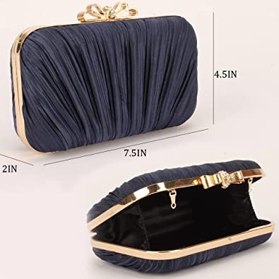 Satin Clutch Evening Bag Diamond Pleated Purse Pearl Tote Bridal Wedding Porm