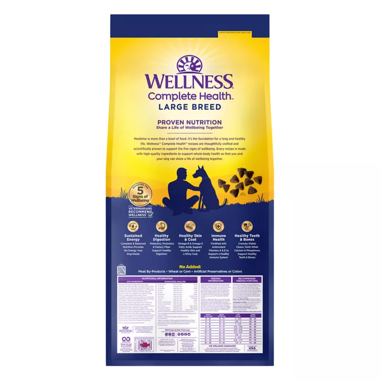 NO CORN, WHEAT, OR SOY: Adult large breed dry dog food doesn't contain poultry by–products, wheat, wheat gluten, corn, soy, artificial colors, or preservatives.